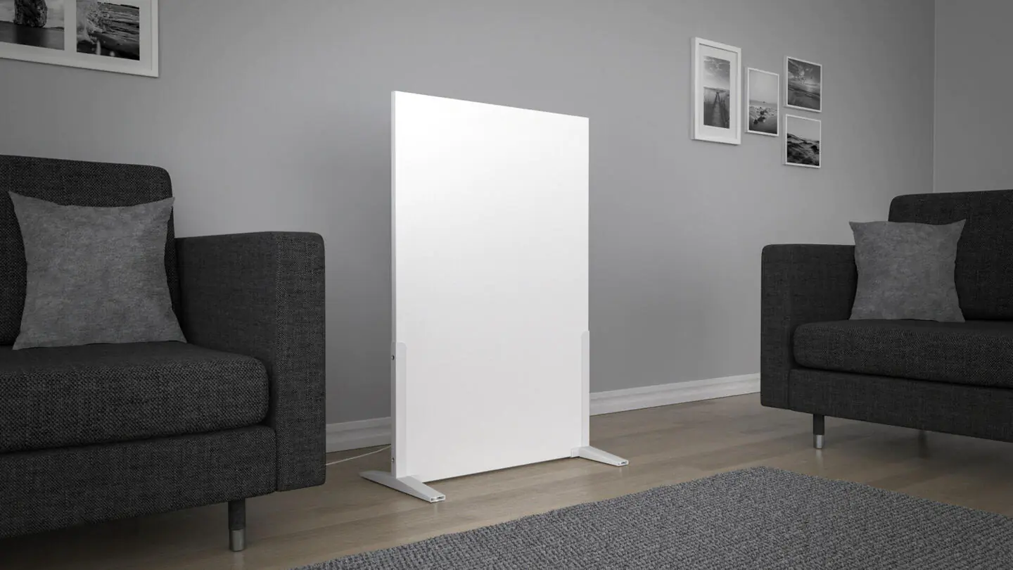- Stabile mobile Infrarotheizung, beidseitig weiß pulverbeschichtet, 105x70 cm