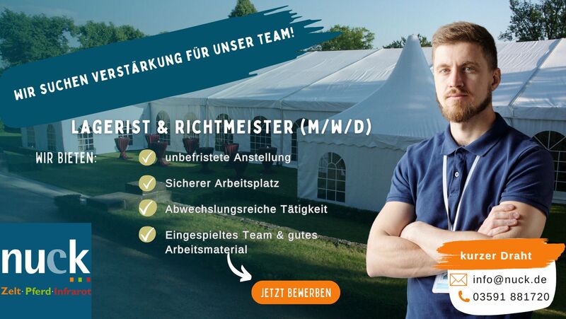 Die nuck GmbH aus Bautzen sucht Verstärkung im Bereich Zeltbau und Lager.